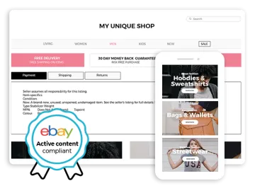 3DSellers: Duplique sus ventas con categorías de promoción cruzada, incluidas en todas las plantillas. ¡Agregue diseños modernos a sus listados y muestre sus productos de manera efectiva! Nuestras plantillas están diseñadas por los mejores diseñadores de comercio electrónico, personalícelas para reflejar su marca. Aplique su diseño a todos los listados a la vez o por categoría. Además, puede configurar todos los listados futuros para que se adapten automáticamente.