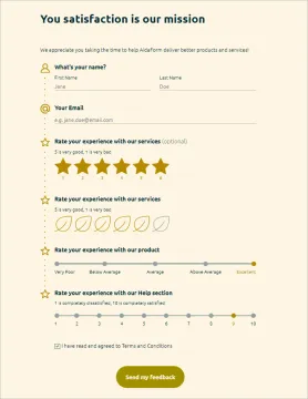 En lugar de aprender a crear formularios HTML desde cero, regístrese con el generador de formularios AidaForm y concéntrese en las preguntas que desea hacer. Cree formularios en línea que obtengan respuestas, con el creador de formularios en línea de AidaForm.