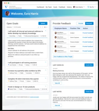 Avature le permite diseñar un proceso de revisión de desempeño aerodinámico y con visión de futuro para ayudar a los empleados a desarrollarse para el futuro. La revisión puede incluir una autoevaluación de metas y competencias, revisión por pares y la evaluación del gerente. Los gerentes pueden guiar el desarrollo de los empleados utilizando datos relevantes de comentarios, registros, notas y el historial de desempeño del empleado.