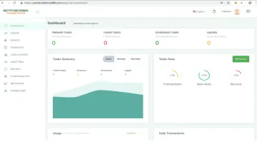 - Gestionar múltiples botsUna plataforma de servidor en la nube segura y escalable basada en la Web para implementar, programar, rastrear y administrar múltiples robots.