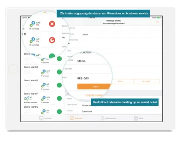 Gensys se enfoca en el impacto del negocio. En el caso de una interrupción (emergente), vea de un vistazo qué servicio comercial, qué proceso comercial se ve afectado. En tiempo real, se muestra el estado de los servicios comerciales, también por ubicación geográfica. No solo mostrando “bueno” o “incorrecto”, ni siquiera se ve una perturbación amenazante.