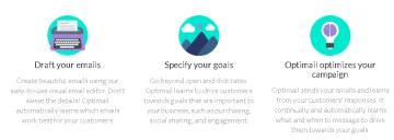 Ir más allá de abrir y hacer clic en las tasas. Optimail aprende a llevar a los clientes hacia objetivos que son importantes para su negocio, como compras, intercambio social y compromiso.